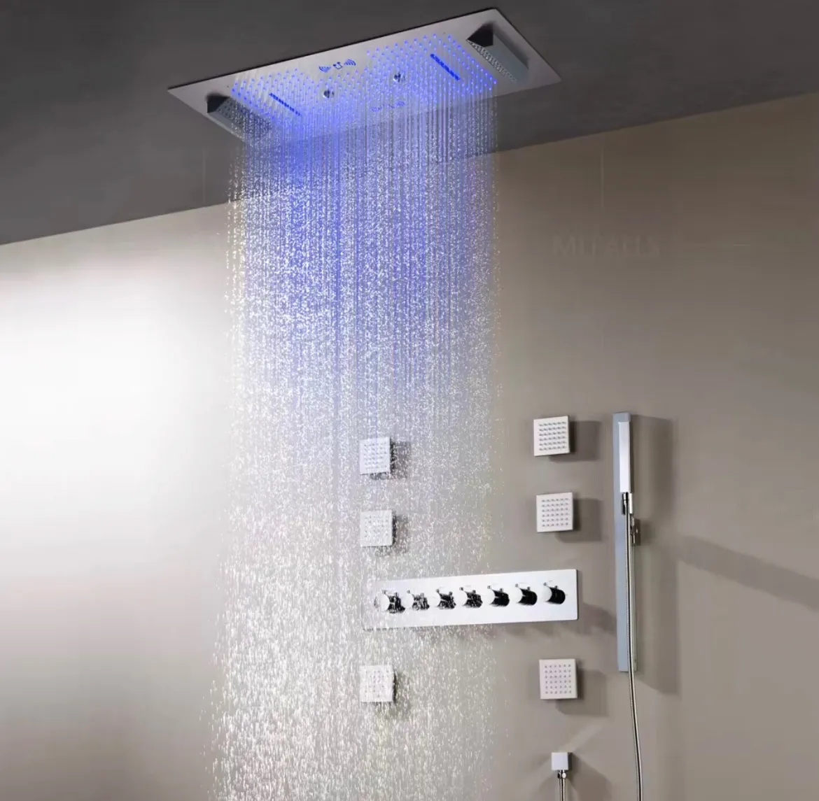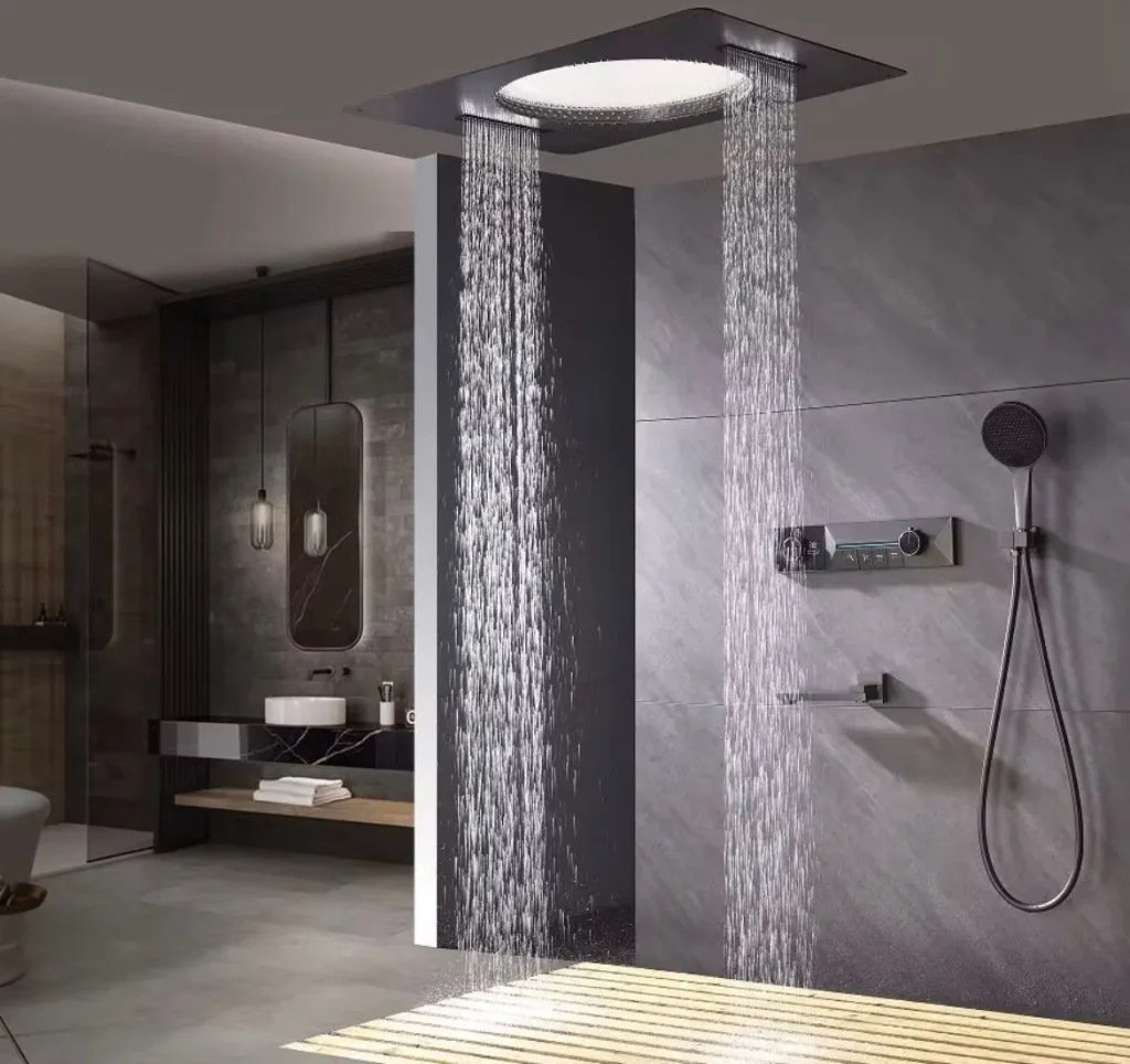 Transform your bathroom into a spa-like retreat with this luxury rainfall shower system, designed to deliver a soothing, full-coverage water flow that mimics natural rain. Crafted with premium materials for durability and modern elegance, it combines comfort, performance, and style in one sleek design.
