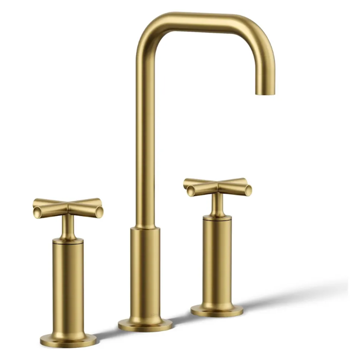 Widespread Bathroom Faucet with X Handles in Gold